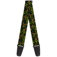 - Q: What is the design of the Buckle-Down Guitar Strap? A: The strap features a camo olive black skull design, making it visually striking and appealing to musicians who enjoy unique styles.