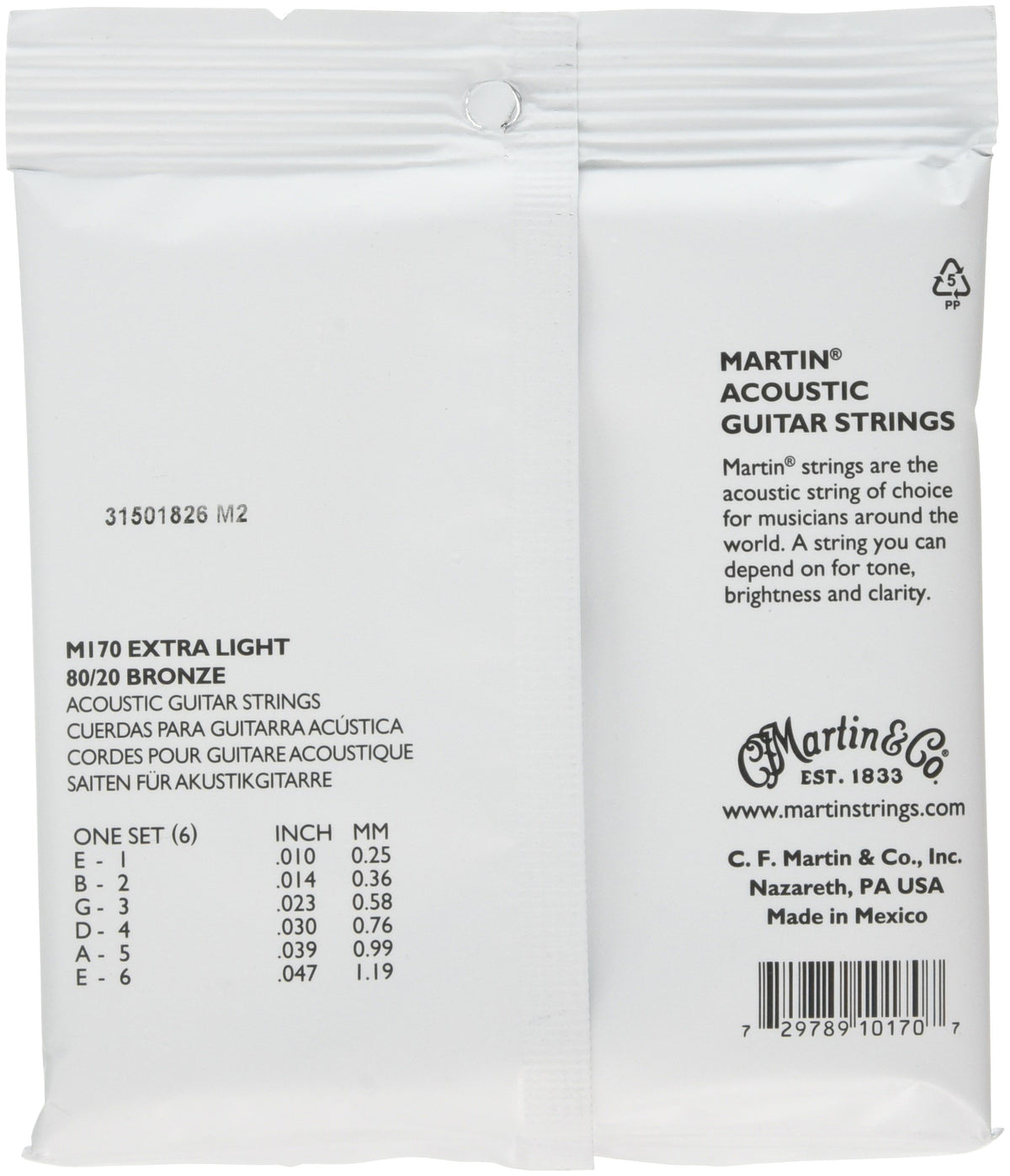 - Q: What are the gauge sizes of the C.F. Martin & Co. M170 strings? A: The C.F. Martin & Co. M170 strings come in gauge sizes of 10-14-23-30-39-47.