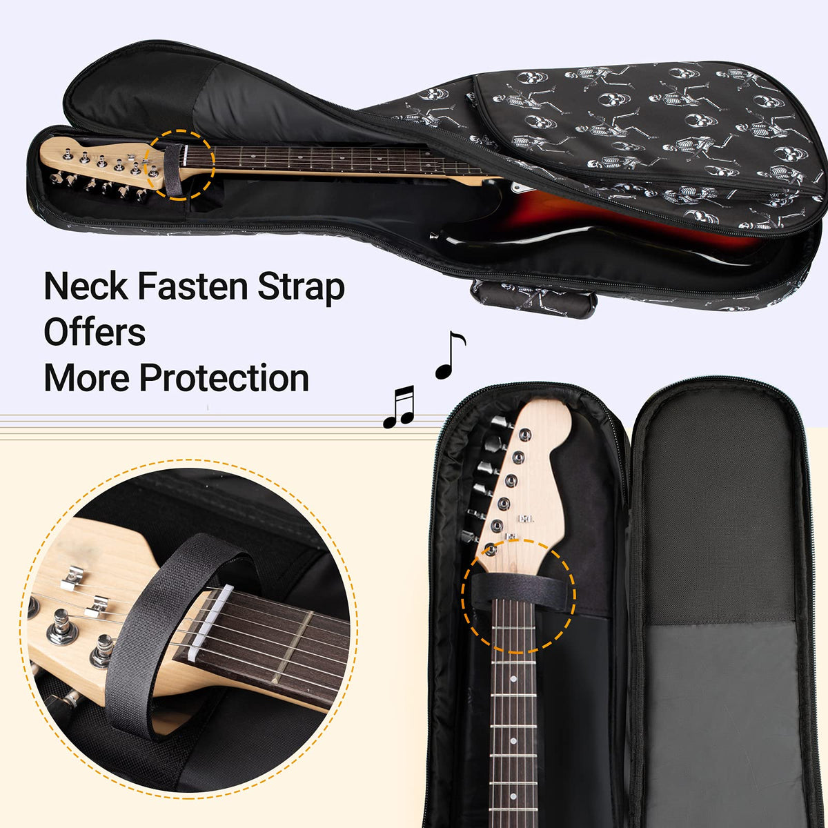 CAHAYA Electric Guitar Gig Bag Printing Soft Guitar Case 8mm Padding Guitar Bag Backpack with Handle Loop Halloween Skeleton CY0