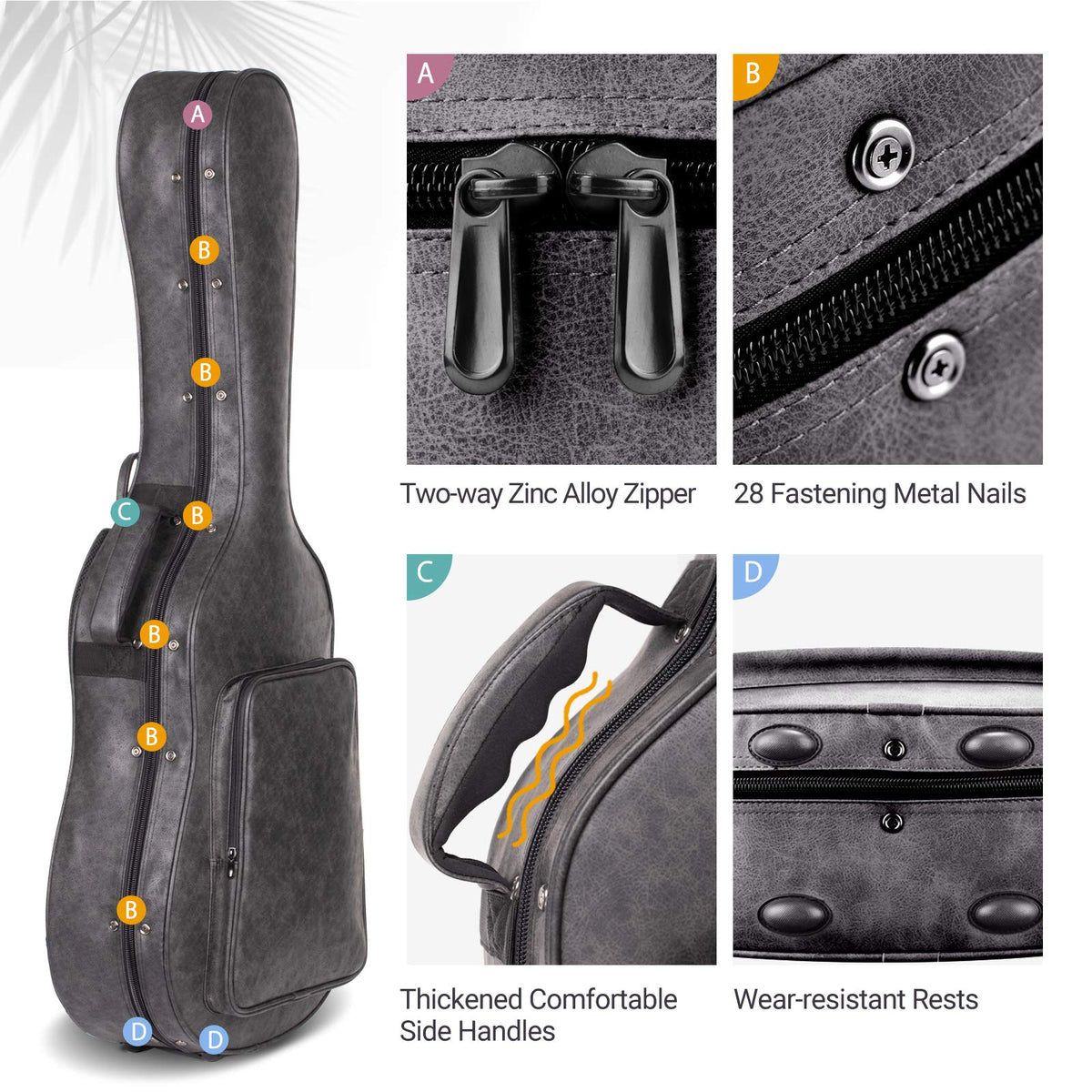 • Q: How many pockets does the case have? A: The case comes with three pockets, allowing for convenient storage of accessories such as picks, straps, and sheet music.