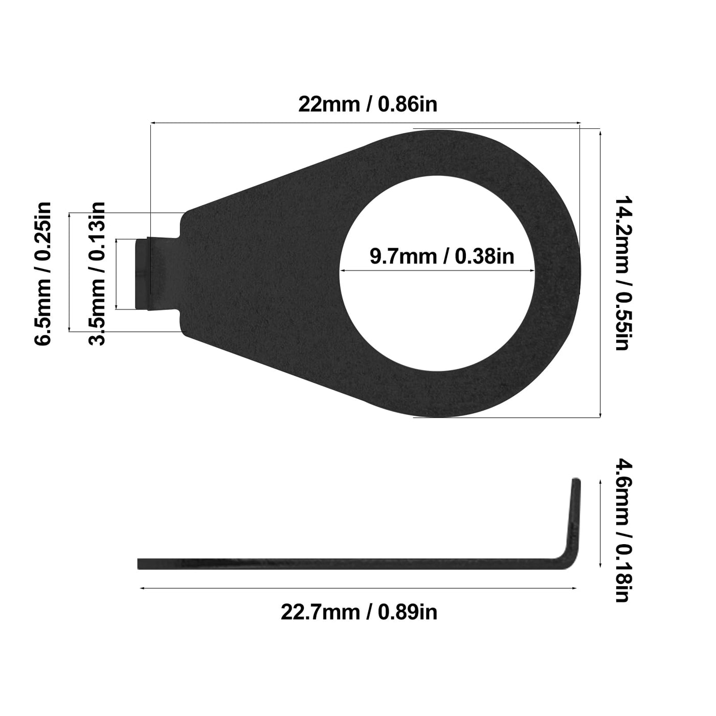 • Q: What is the size of the Guitar Knobs Pointer Plates? A: Each pointer plate measures 22mm in total length and 14mm in outer diameter, with a 9.7mm inner diameter.