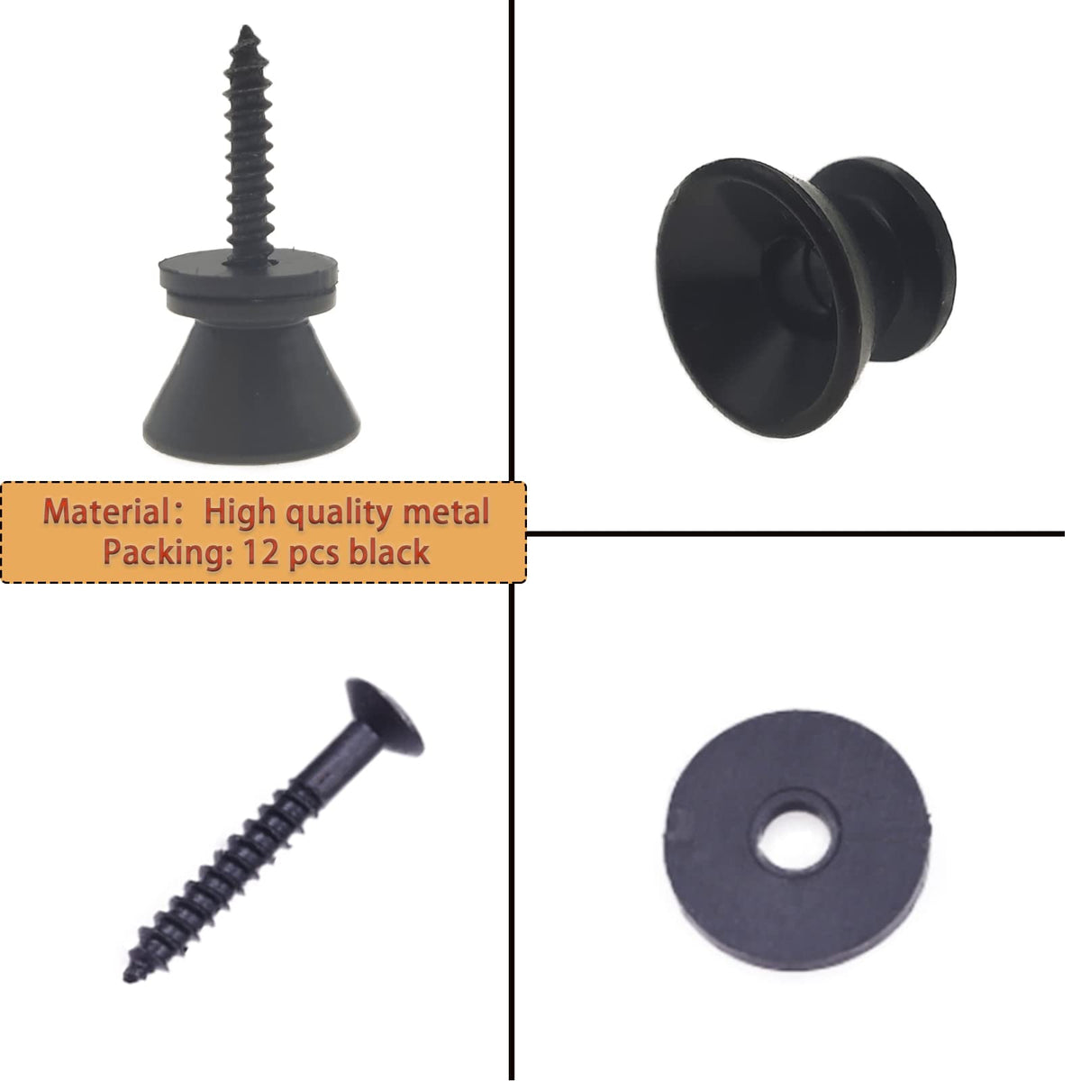 Cheerock 12Pcs Guitar Strap Locks Set, Metal Guitar Strap Buttons Lock, Black Guitar Straps Lock for Acoustic, Ukulele, Martin,