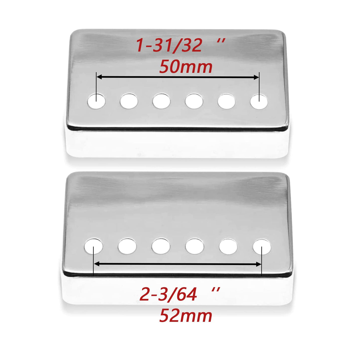 - Q: Are these humbucker covers compatible with all electric guitars? A: These humbucker covers are designed to fit most electric guitars, but it's important to confirm that the pole spacing (50mm and 52mm) matches your guitar before purchasing.