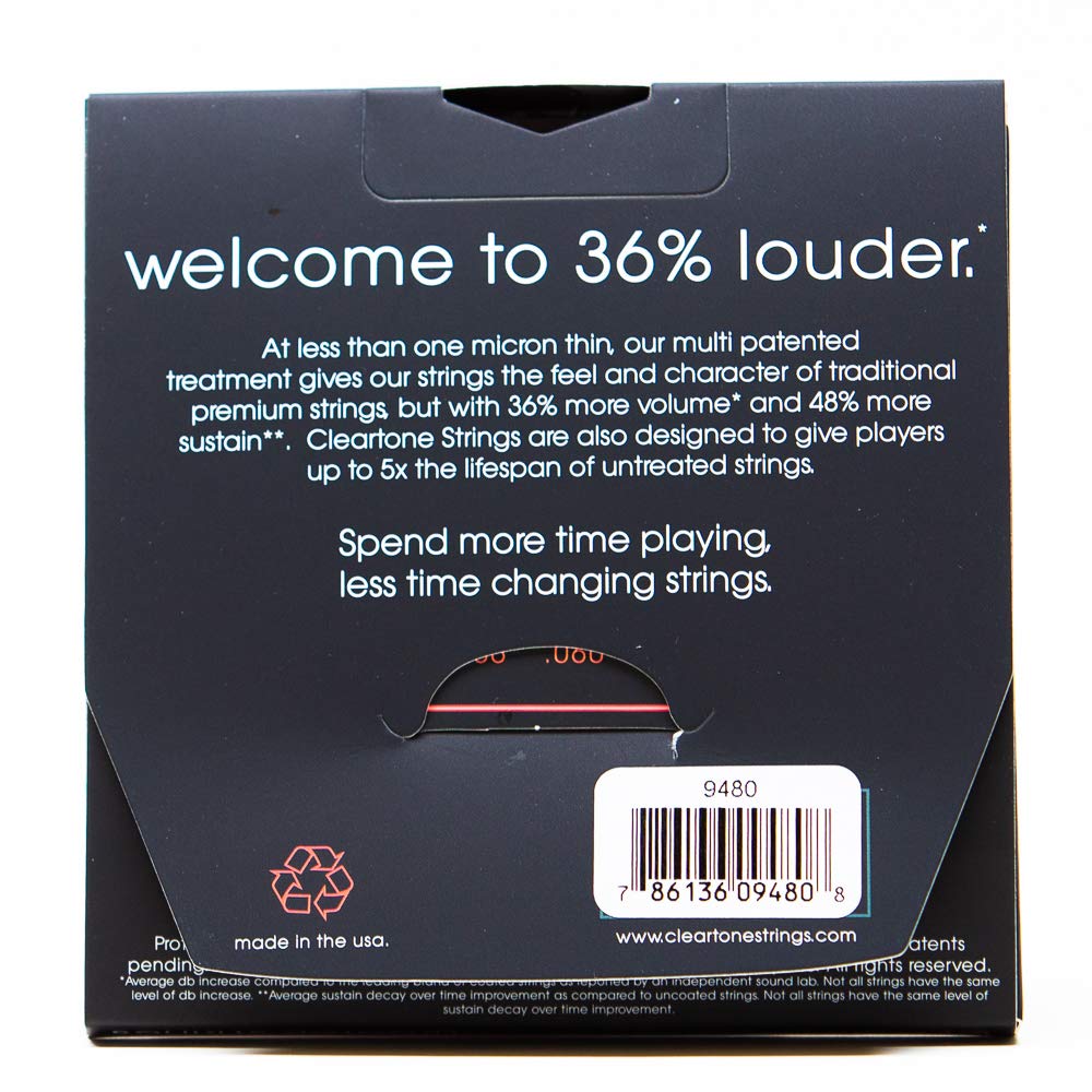 • Q: How do Cleartone strings compare to untreated strings in terms of lifespan? A: Cleartone's patented treatment allows these strings to last 3-5 times longer than untreated strings, making them a reliable choice for musicians.