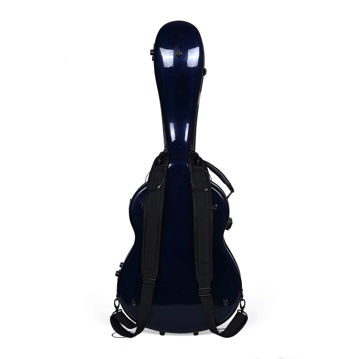 Crossrock Air 4/4 Classical Guitar Flight Case, 100% Carbon Fiber Hard Shell with Backpack and Protective Cover, Blue (CRF6020CB