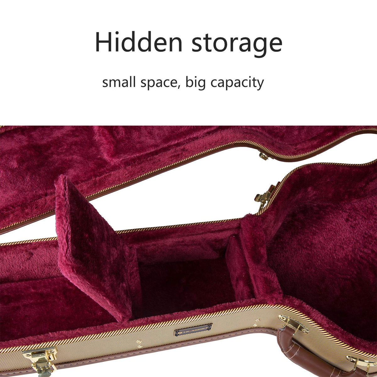 - Q: Does the Crossrock Dreadnought Guitar Case have any storage options? A: Yes, it includes an interior storage compartment that offers secure hideaways for strings, picks, capos, and other accessories.
