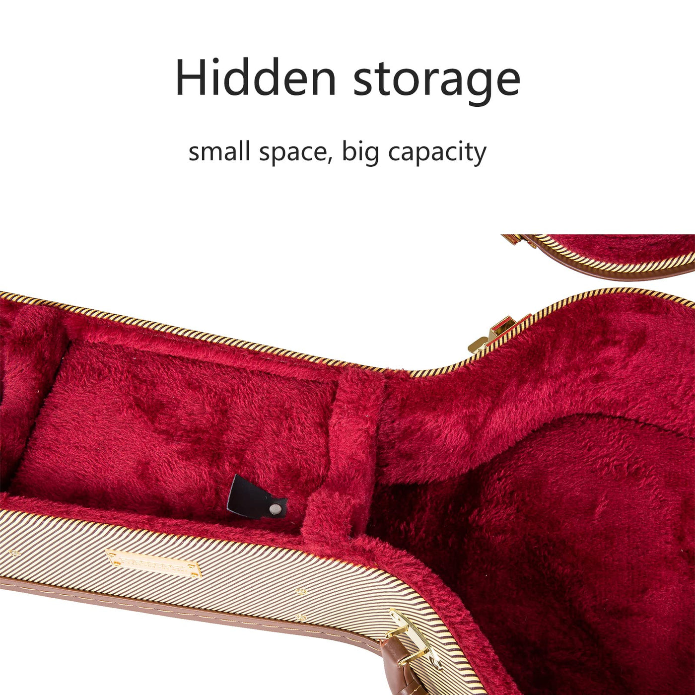 - Q: Can I store accessories in the case? A: Yes, the case features an interior storage compartment that provides secure hideaways for strings, picks, capos, and other accessories.