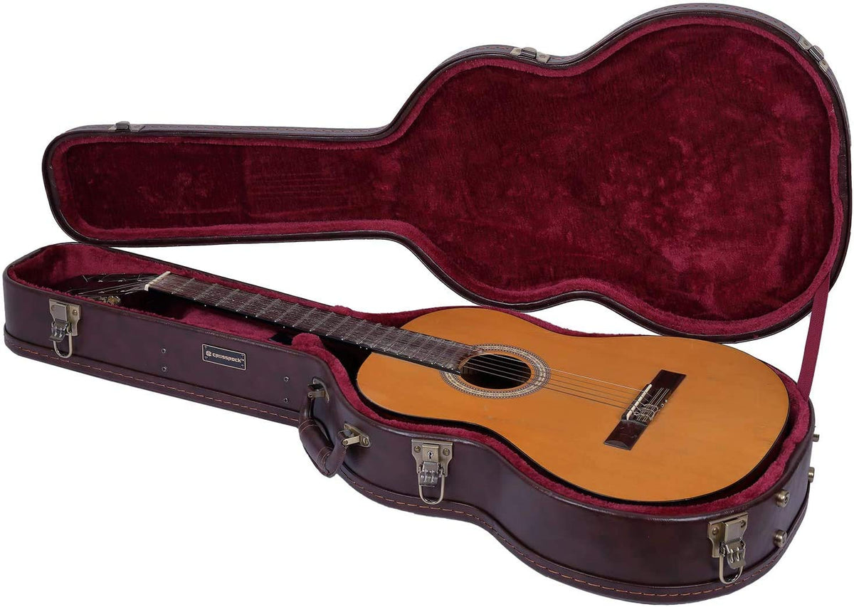 Crossrock Hard-Shell Wooden Case-Fits 4/4 Classical Nylon String Acoustic Guitars-Stainless Steel Latches, Sponge Lining, Metal