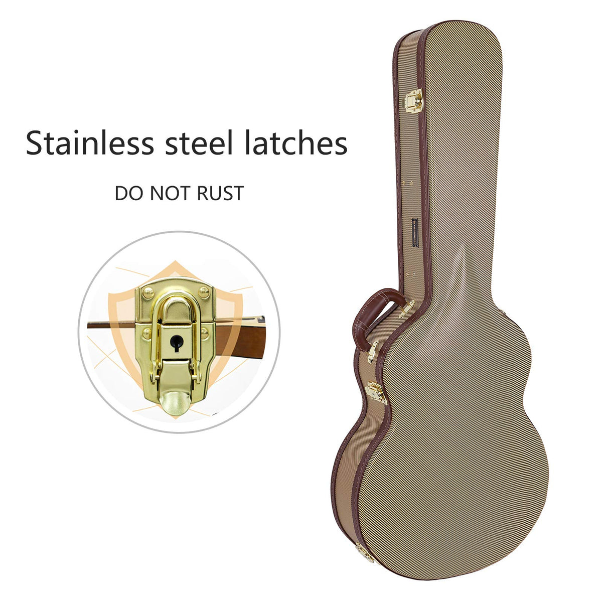 • Q: What materials are used in the construction of this guitar case? A: The case features a heavy-duty multi-layer plywood core and is covered with a vinyl exterior.