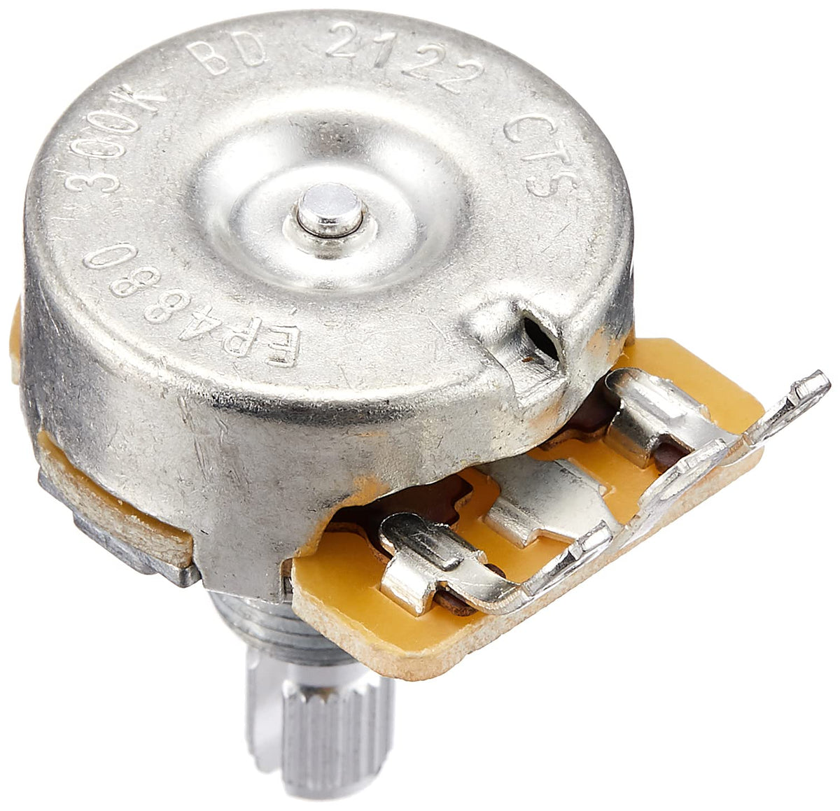 • Q: What is the value of the CTS Vintage Style 300K Audio Pot? A: The '300K' value indicates the resistance level of the potentiometer, which affects the tone and volume control in your instrument.
