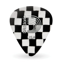 • Q: What material are the D'Addario checkerboard guitar picks made from? A: The D'Addario checkerboard guitar picks are made from premium celluloid, known for providing a natural feel and warm, fat tone.