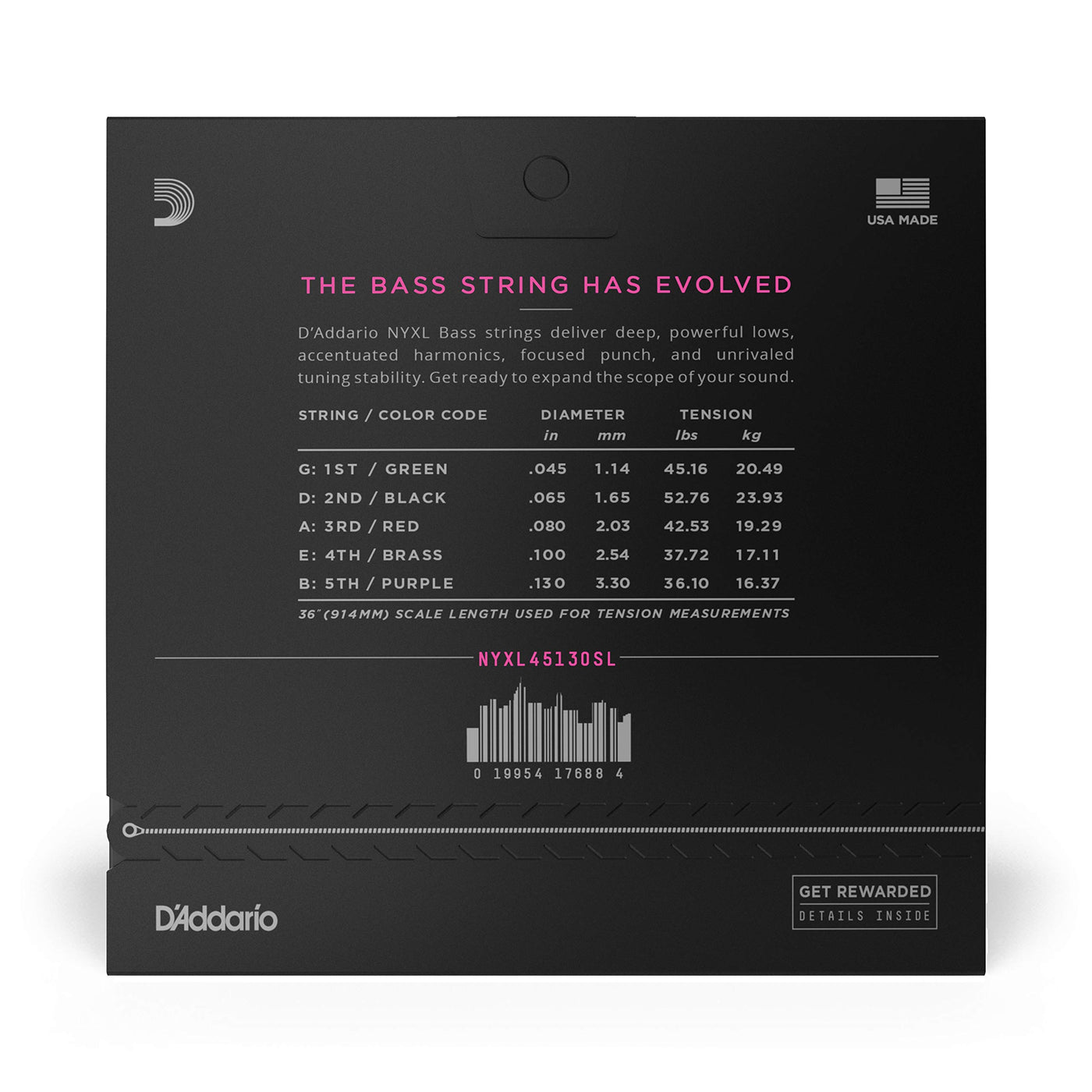 D'Addario Bass Guitar Strings - NYXL Bass Strings - NYXL45130SL - Unrivaled Strength, Tuning Stability, Enhanced Response - For