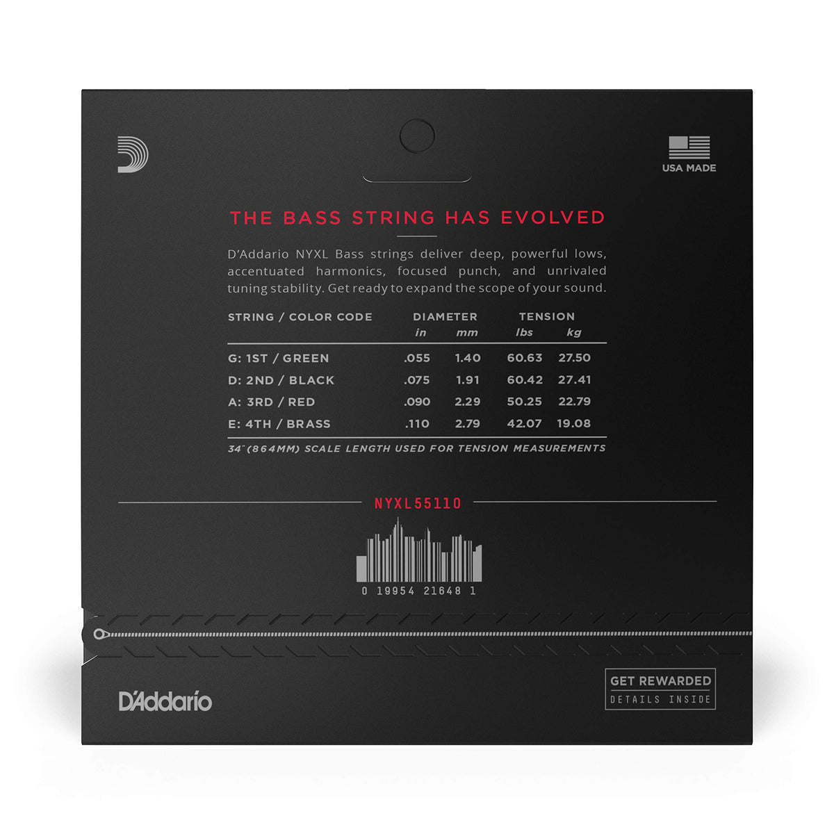 D'Addario Bass Guitar Strings - NYXL Bass Strings - NYXL55110 - Unrivaled Strength, Tuning Stability, Enhanced Response - For 4