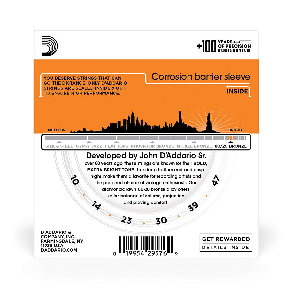 D'Addario Guitar Strings - Acoustic Guitar Strings - 80/20 Bronze - For 6 String Guitar - Deep, Bright, Projecting Tone - EJ10-3