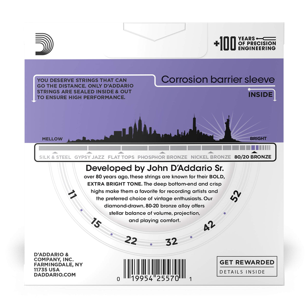 D'Addario Guitar Strings - Acoustic Guitar Strings - 80/20 Bronze - For 6 String Guitar - Deep, Bright, Projecting Tone - EJ13-3
