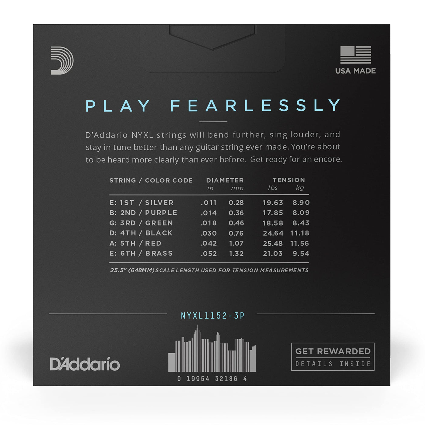 D'Addario Guitar Strings - NYXL Electric Guitar Strings - NYXL1152-3P - Unrivaled Strength, Tuning Stability, Enhanced Mid-Range