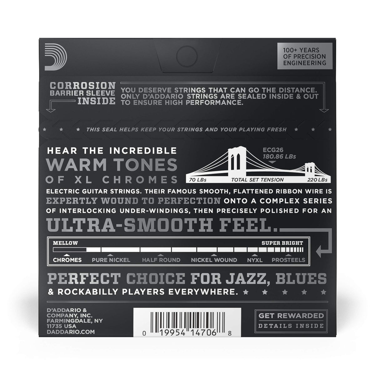 D'Addario Guitar Strings - XL Chromes Electric Guitar Strings - Flat Wound - Polished for Ultra-Smooth Feel and Warm, Mellow Ton