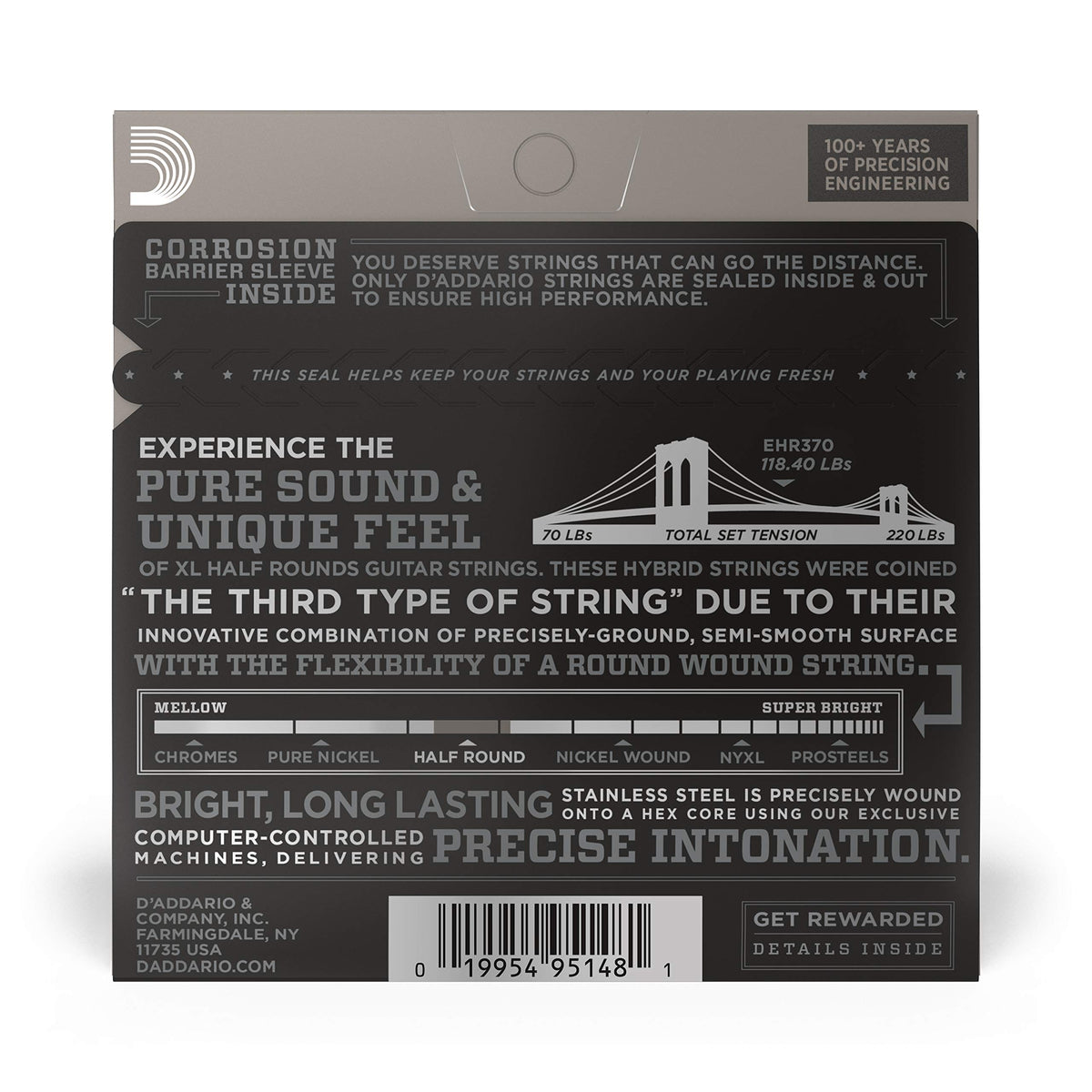 D'Addario Guitar Strings - XL Half Rounds Electric Guitar Strings - Semi-Flat Wound - Bright Tone, Smooth Feel, Reduced Finger N
