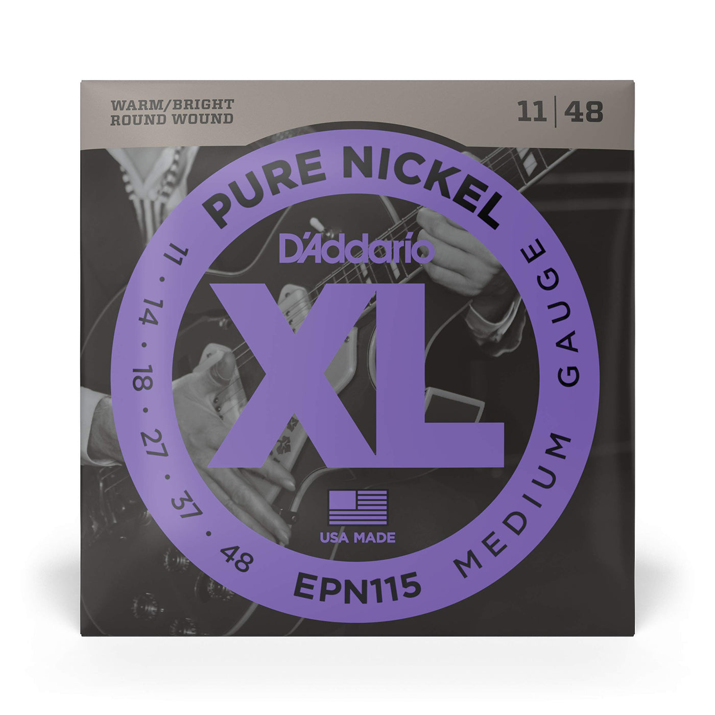 • Q: What gauge are the D'Addario EPN115 strings? A: The D'Addario EPN115 strings are a medium gauge set, specifically 11-48, providing a balance of volume and playability.