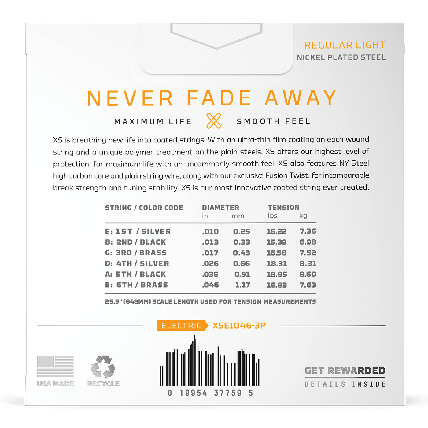 D'Addario Guitar Strings - XS Nickel Coated Electric Guitar Strings - XSE1046-3P - Maximum Life with Smooth Feel & Exceptional T