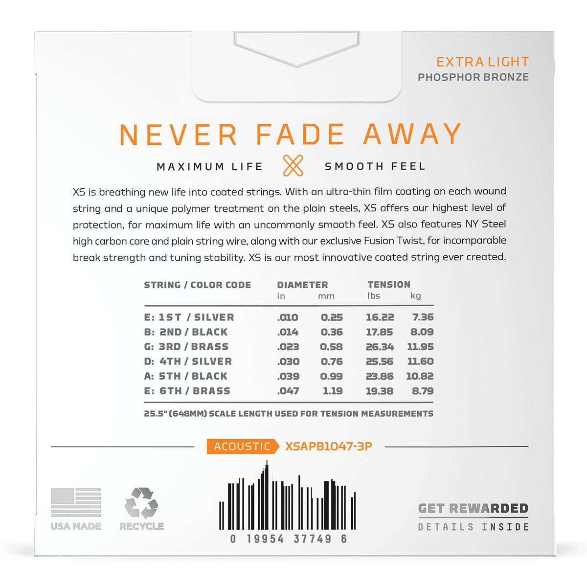 • Q: Can I earn rewards by purchasing these strings? A: Yes, each set of XS Phosphor Bronze strings includes a code on the packaging that allows you to register for Players Circle points, which can be redeemed for rewards.