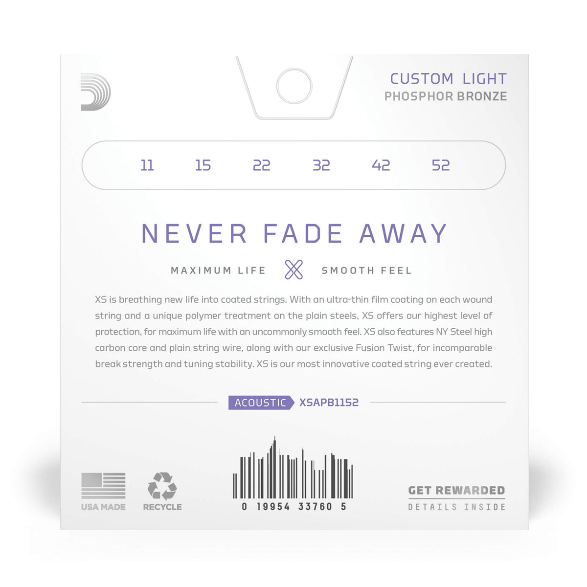 D'Addario Guitar Strings - XS Phosphor Bronze Coated Acoustic Guitar Strings - XSAPB1152 - Maximum Life with Smooth Feel & Excep