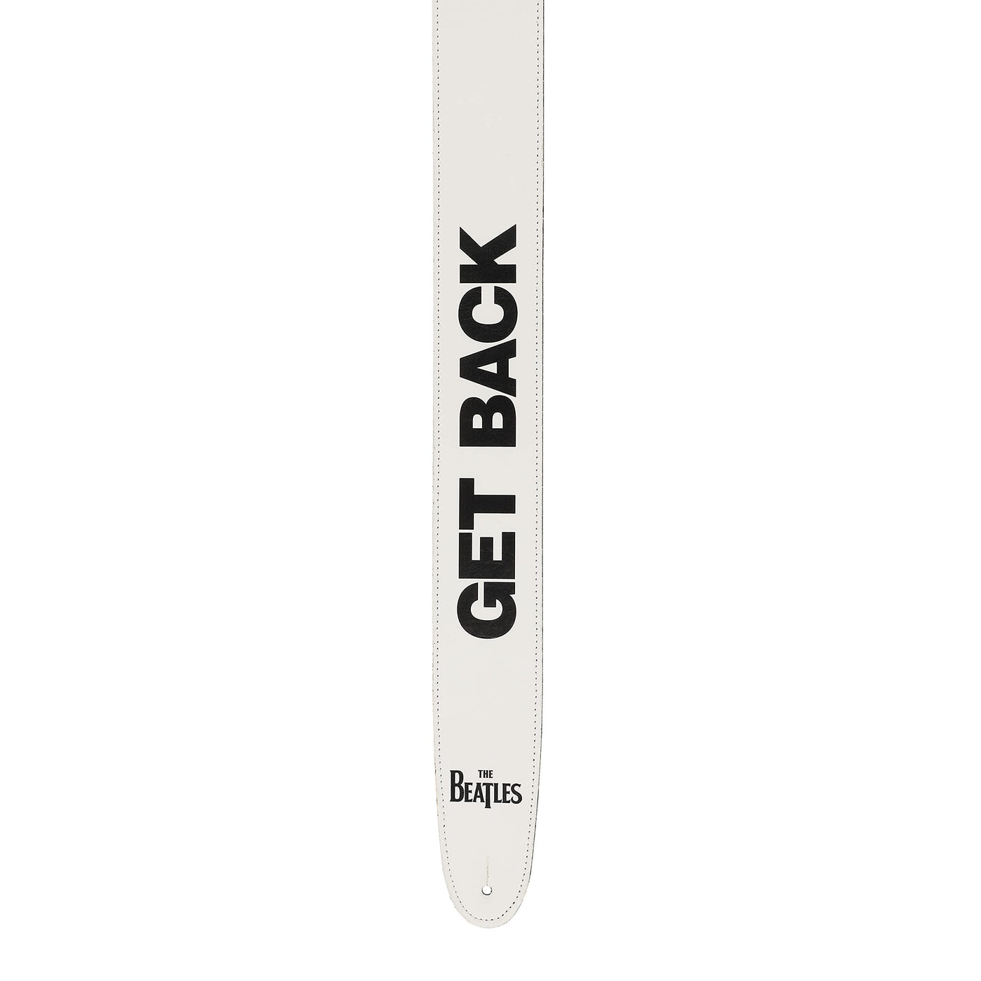 - Q: What unique design features does this guitar strap have? A: The strap features a white background with The Beatles logo and the phrase 'Get Back' printed prominently, making it a stylish accessory for fans.