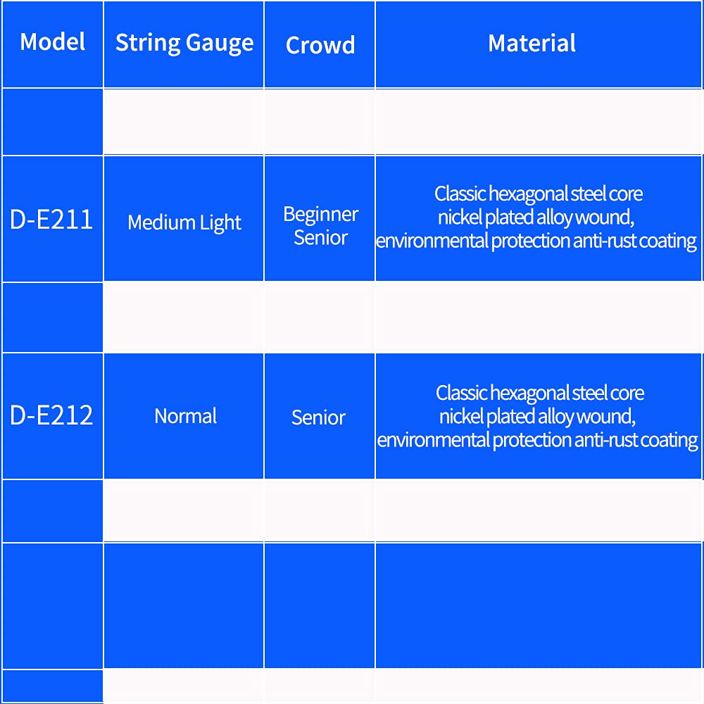 • Q: How do I care for the Danchet E212 strings? A: To prolong the life of the Danchet E212 strings, wipe them with a soft cloth after each use to remove sweat and dirt, and store your guitar in a controlled environment.