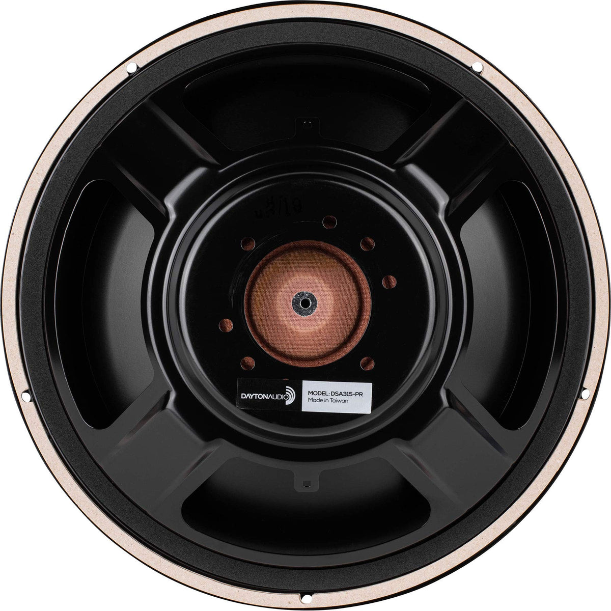 Quick Overview The Dayton Audio Designer Series passive radiators are excellent general-purpose passives suitable for replacement or for new construction. Built to be a perfect match for the Designer Series drivers, these passive radiators feature the same steel frame, rubber surround, and anodized aluminum cone making them visually identical. Product Highlights Cosmetic frame edge looks great even when surface mounted Allows tuning small enclosures lower than using conventional ports Rear mounted screw allows easy mass adjustment for custom tuning Perfect match for Dayton Audios aluminum cone Designer Series drivers Product Manuals / Spec Sheets / Downloads Dayton Audio DSA315-PR Specification Sheet AddThis Sharing Buttons Share to FacebookFacebook Share to TwitterTwitter Share to MoreAddThis Product Description The Dayton Audio Designer Series passive radiators are excellent general-purpose passives suitable for replacement or for new construction. A built-in mass disc offers a good starting point for most designs, and a convenient M5 threaded hole (screw included) allows different types of weights to be added if desired. Cosmetically and mechanically, these passives match Dayton Audios Designer Series drives, with a black anodized aluminum cone and medium-roll rubber surround for clean excursion and long life. The possibilities with these passives are endless, from large tower designs to compact subwoofer systems. Specifications: Fs: 17.5 Hz Vas: 190.8 liters Qms: 6.23 Cms: 0.58 mm/N Rms: 2.5 kg/s Mms: 142.6 g Sd: 480 sq. cm. Xmax: 13 mm Dimensions: Overall diameter: 313.94 mm, Cutout diameter: 272.03 mm, Depth: 88.9 mm. Note: Adding mass to the passive radiator will decrease Fs and increase Qms. Tip: As a general rule, the passive radiator(s) should have at least double the displacement of air (Vd) as the active woofer(s)/subwoofer(s) in the system. To calculate Vd: Sd x Xmax = Vd Product Details Speaker Series Designer Series Model Number DSA315-PR List Price $44.99 Color Black Unit of Measure Each UPC 848791005084 Warranty - Parts 5 Years Warranty - Labor 5 Years Product Shipping Weight (lbs.) 2.65 Speaker Type Passive Radiator Nominal Diameter 12'' Power Handling (max) -- Continuous Program Power -- Sensitivity -- Frequency Response -- Voice Coil Diameter -- Magnet Weight -- DC Resistance (Re) -- Voice Coil Inductance (Le) -- Resonant Frequency (Fs) 17.5 Hz Mechanical Q (Qms) 6.23 Electromagnetic Q (Qes) -- Total Q (Qts) -- Diaphragm Mass Inc. Airload (Mms) 142.6g Moving Mass Of Diaphragm (Mmd) -- Mechanical Compliance of Suspension (Cms) 0.58 mm/N Surface Area Of Cone (Sd) 480 cm Volume of Displacement (Vd) 622.9 cm BL Product (BL) -- Compliance Equivalent Volume (Vas) 190.8 liters Maximum Linear Excursion (Xmax) 13 mm Drivers Mechanical Losses (Rms) 2.5 kg/s Cone / Diaphragm Material Aluminum Cone Entry / Exit Diameter -- Surround Material Rubber Voice Coil Wire Material -- Voice Coil Former -- Basket/Frame Material Steel Magnet Material -- Overall Outside Diameter 313.94 mm Overall Depth 88.9 mm Baffle Cutout Diameter 272.03 mm # Mounting Holes 5 Mounting Hole Diameter -- Bolt Circle Diameter 304.04 mm Product Weight --