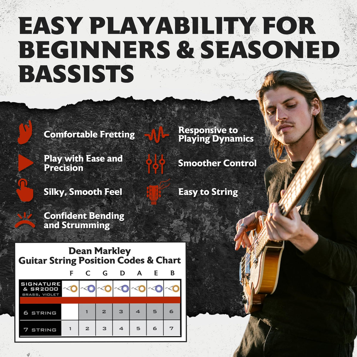Dean Markley SR2000 Stainless Steel Bass Guitar Strings 6 String Set, 27-127 Medium Custom 6 String Bass Guitar, Silky Smooth Ba
