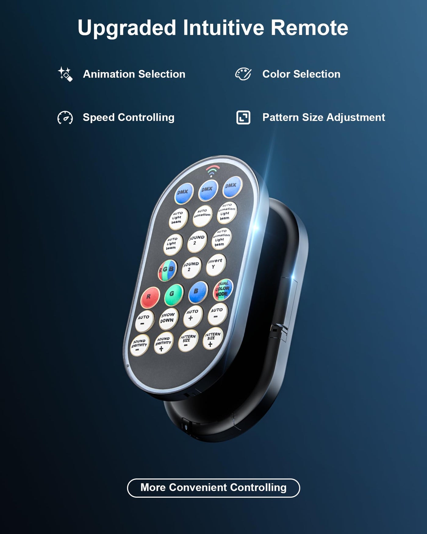 - Q: How do I operate the remote control for the laser lights? A: The remote control allows you to easily switch between animation selections, adjust size, color, and speed. Ensure to point the remote directly at the laser unit for proper functionality.