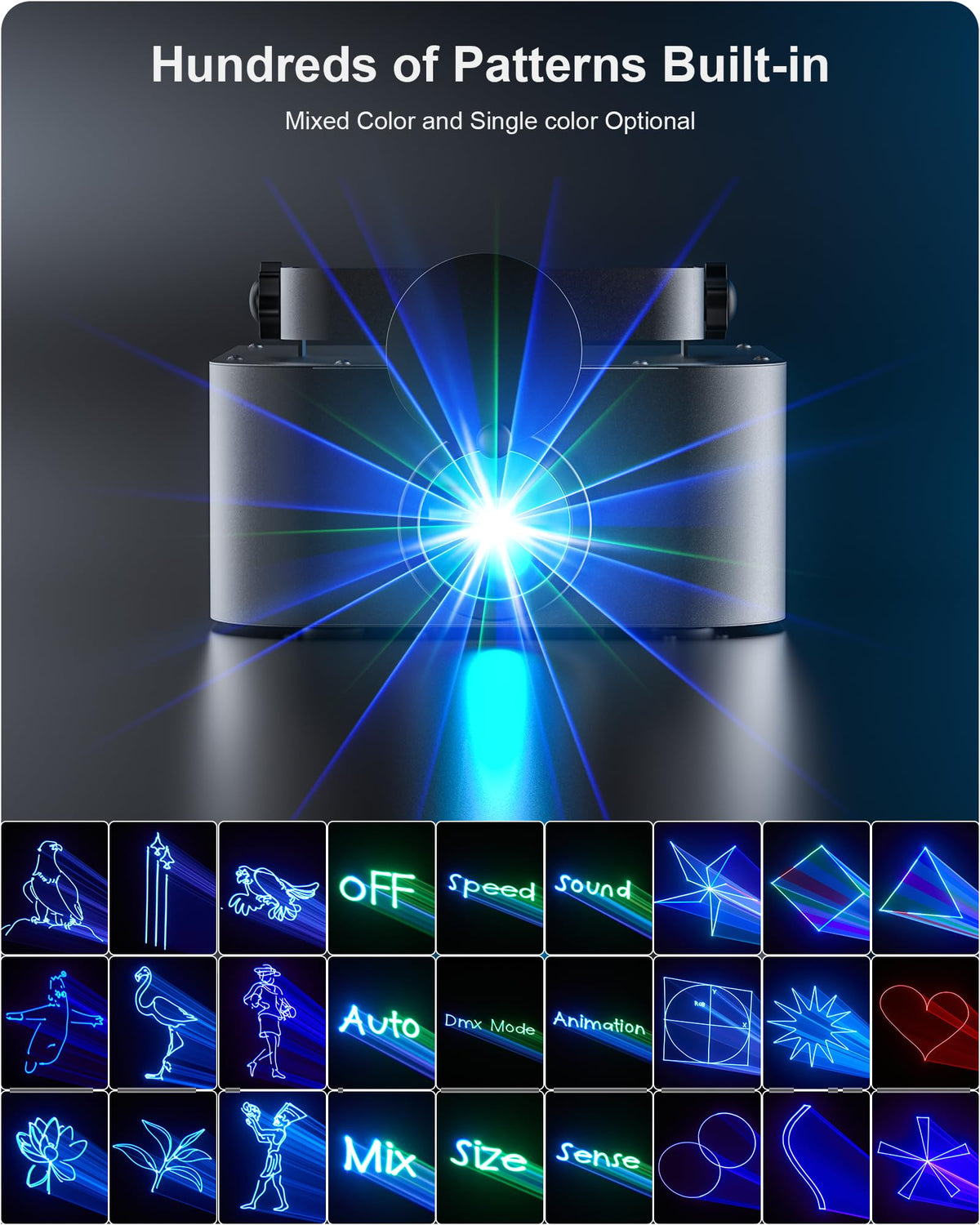 DJ Laser Lights for Party, 3D Animation Laser Machine with Intuitive Remote, RGBW Party Laser Light Show, Sound Activated DMX La