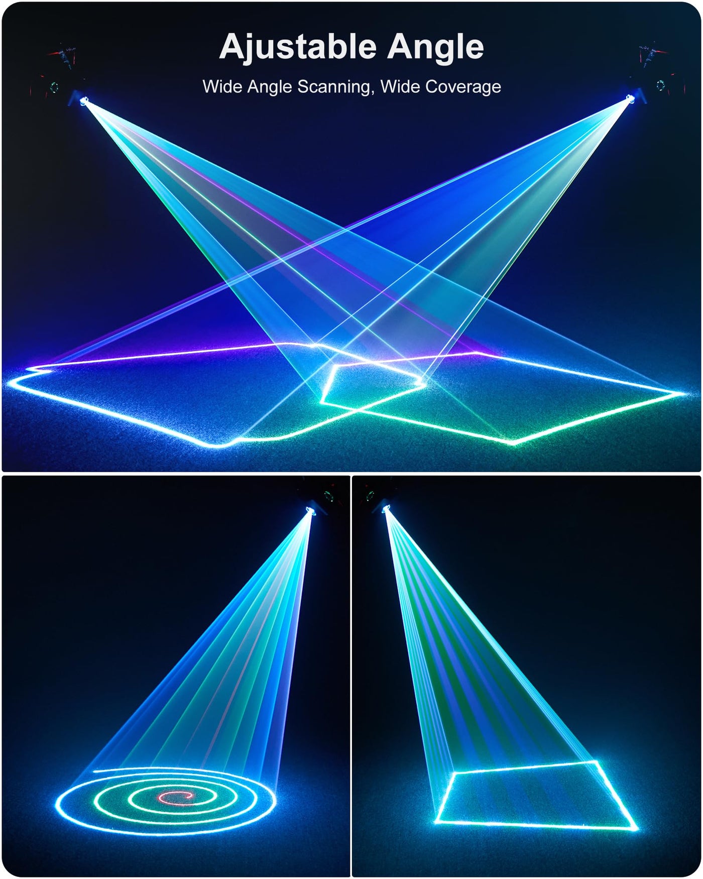 - Q: Do I need a smoke machine to see the effects of the laser lights? A: Yes, using a smoke machine will enhance the visibility of dynamic beams and scanning effects created by the laser lights.