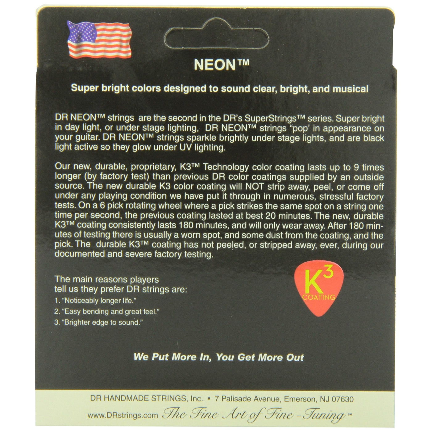 - Q: How many strings are included in the DR Strings HI-DEF NEON set? A: The set includes a total of 6 strings, which is standard for acoustic guitar string sets.