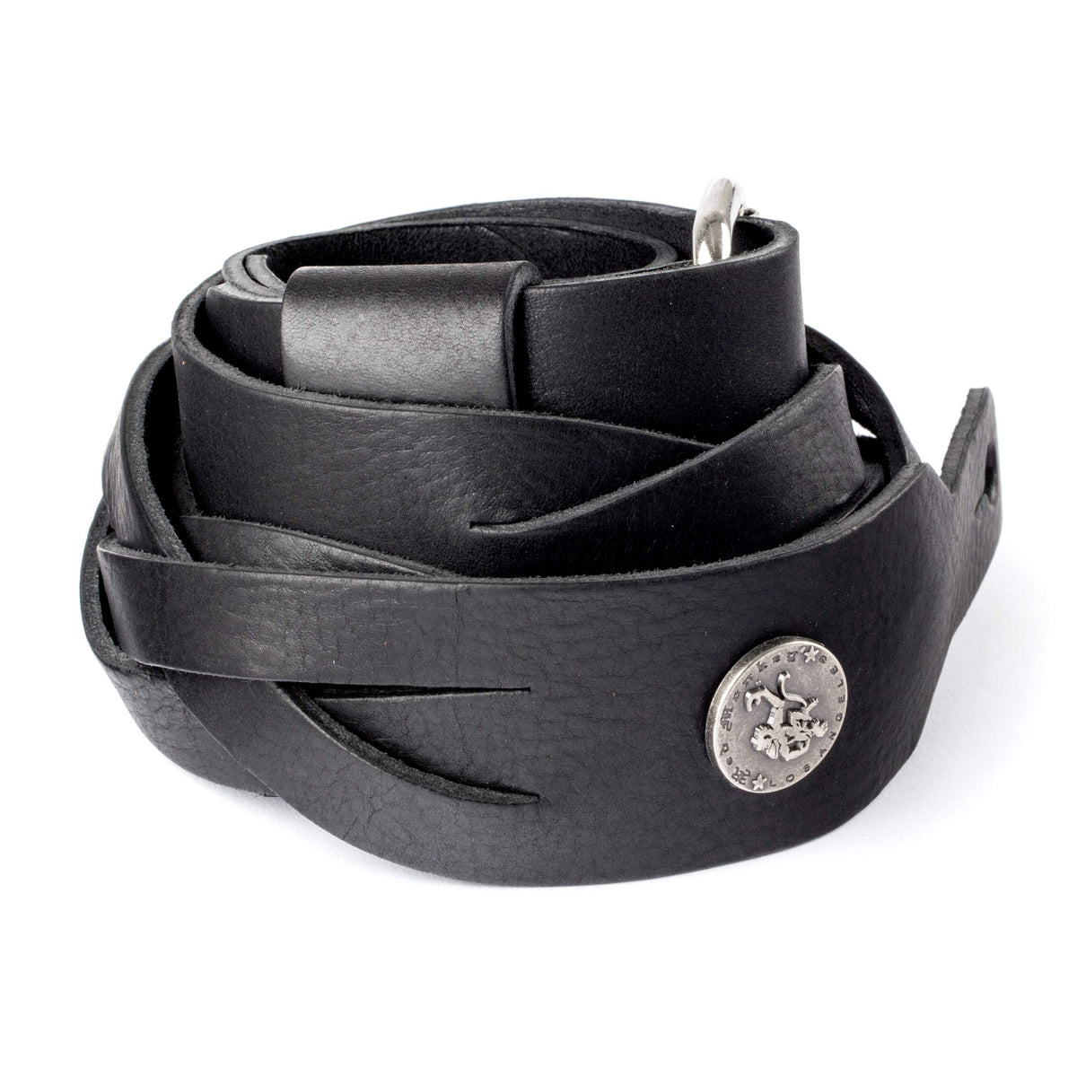 • Q: What is the design of the strap? A: The strap features a braided design that includes a metal buckle and emblem.