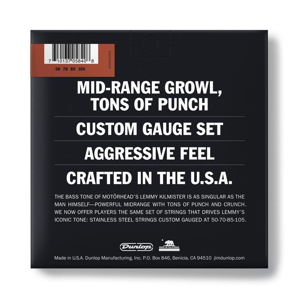 Dunlop Lemmy Kilmister Icon Series LKS50105 Stainless Steel Signature Bass Strings 50-105 Gauge, 4-String Set