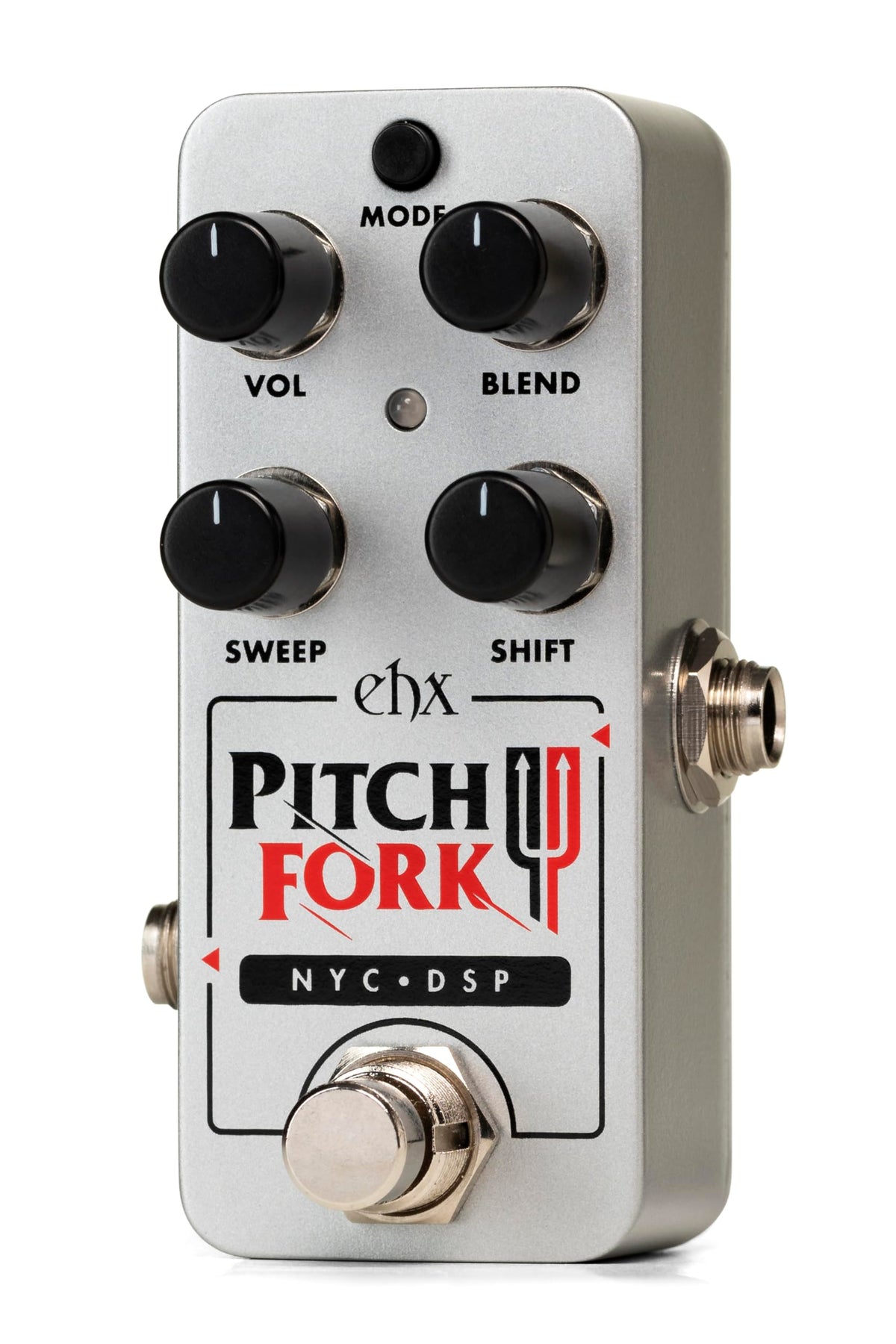 • Q: What are the main features of the Electro-Harmonix Pico Pitch Fork Pitch Shifter Pedal? A: The Pico Pitch Fork offers 30 pitch shift options, three modes (Up, Down, Dual), a blend control for wet/dry mix, and volume control. It also has latching and momentary footswitch modes for versatile usage.
