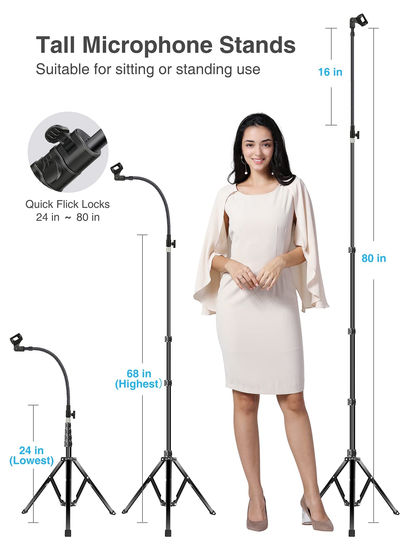 - Q: Is the microphone stand adjustable? A: Yes, the Elitehood Microphone Stand features a telescopic and quick-flip design, allowing for height adjustments from 16 inches to 82 inches.