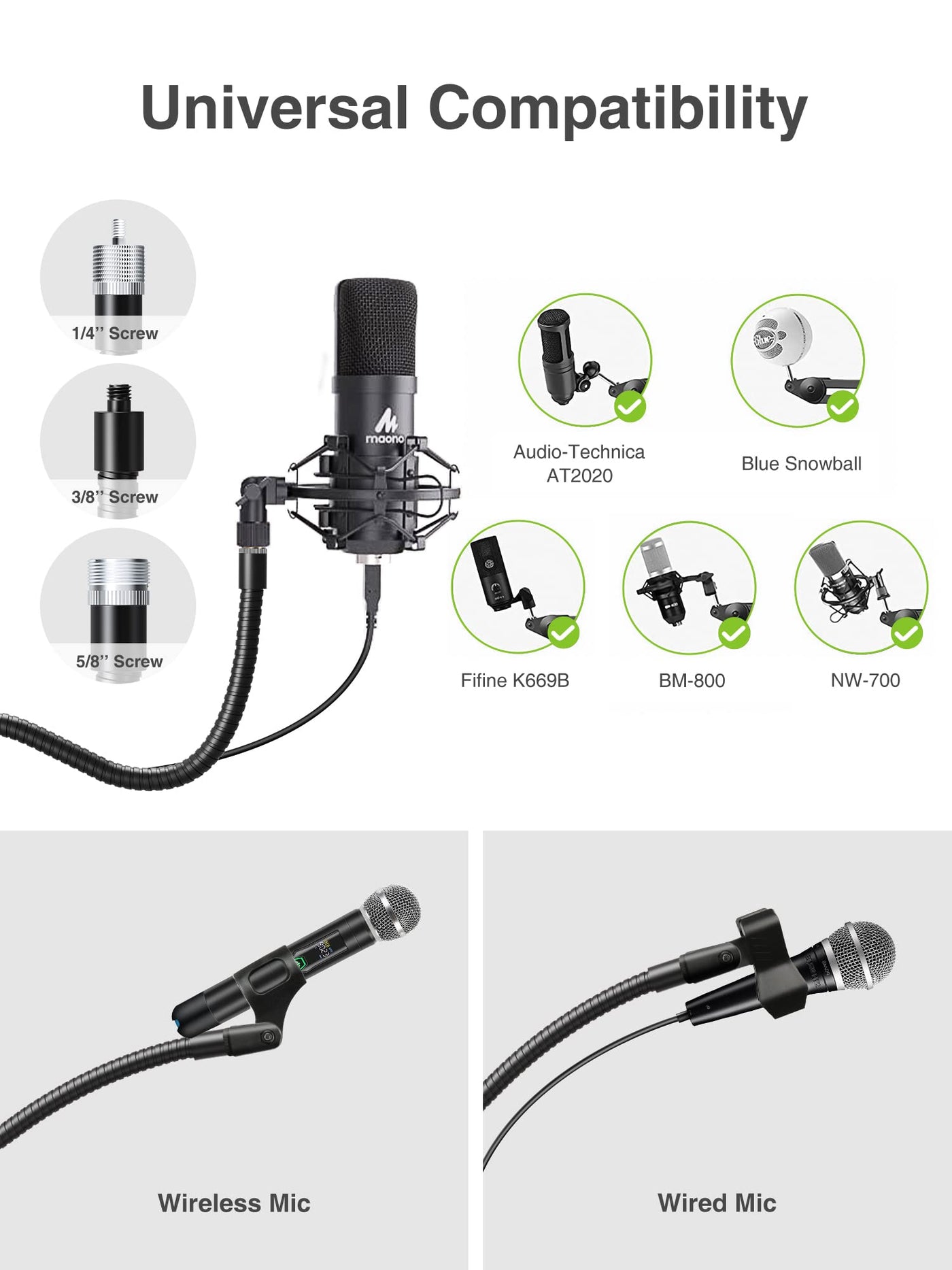 - Q: Does the microphone stand come with a mic clip holder? A: Yes, the Elitehood Microphone Stand includes a mic clip holder and is compatible with various microphone types.