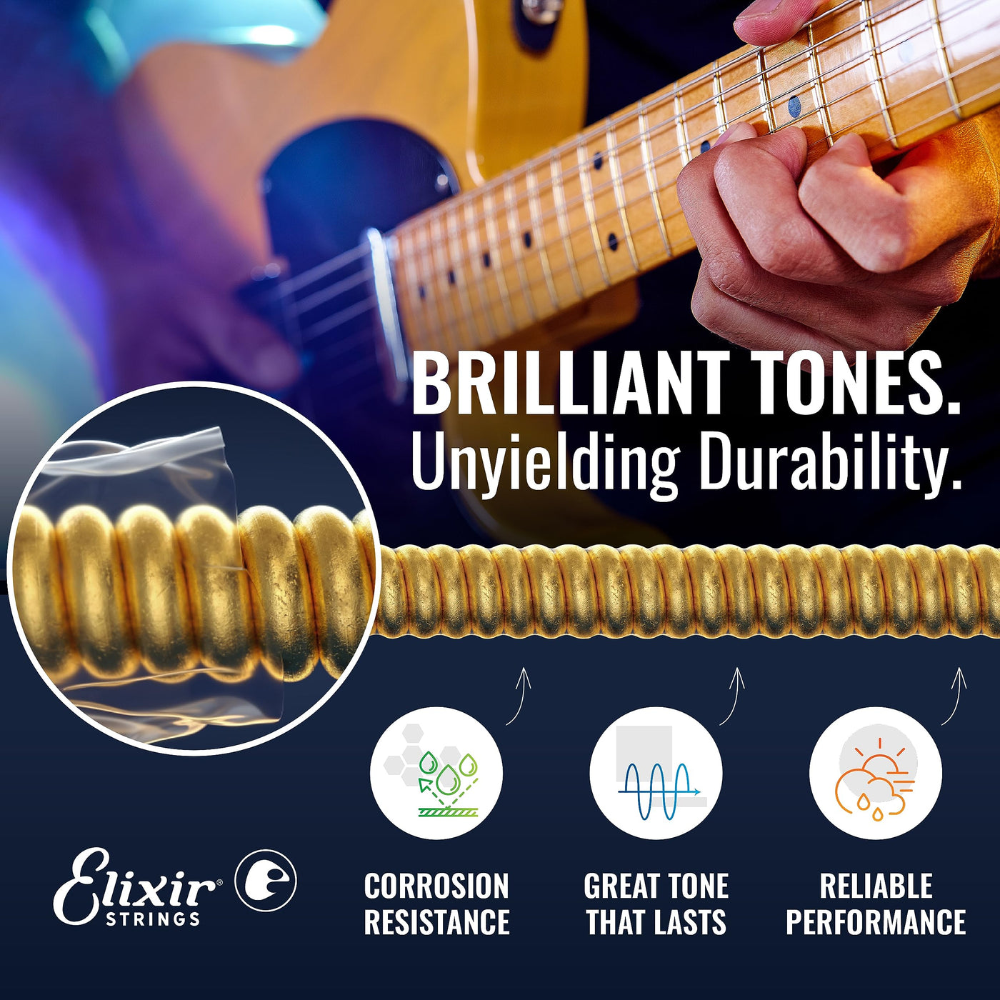 • Q: What are Elixir Strings for electric guitar? A: Elixir Strings for electric guitar are high-quality strings designed to deliver a bright tone and long-lasting performance. They are available with either NANOWEB or POLYWEB coating.