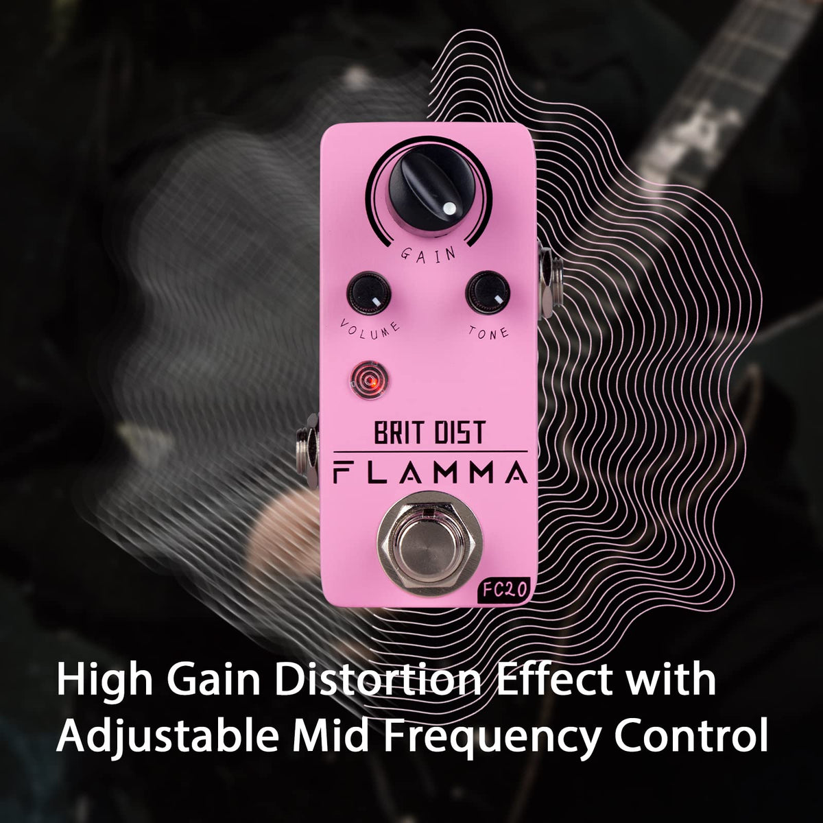 - Q: What is the FLAMMA FC20 Distortion Pedal? A: The FLAMMA FC20 Distortion Pedal is an electric guitar pedal designed to produce high gain distortion effects, featuring adjustable mid frequency control and a true bypass circuit.