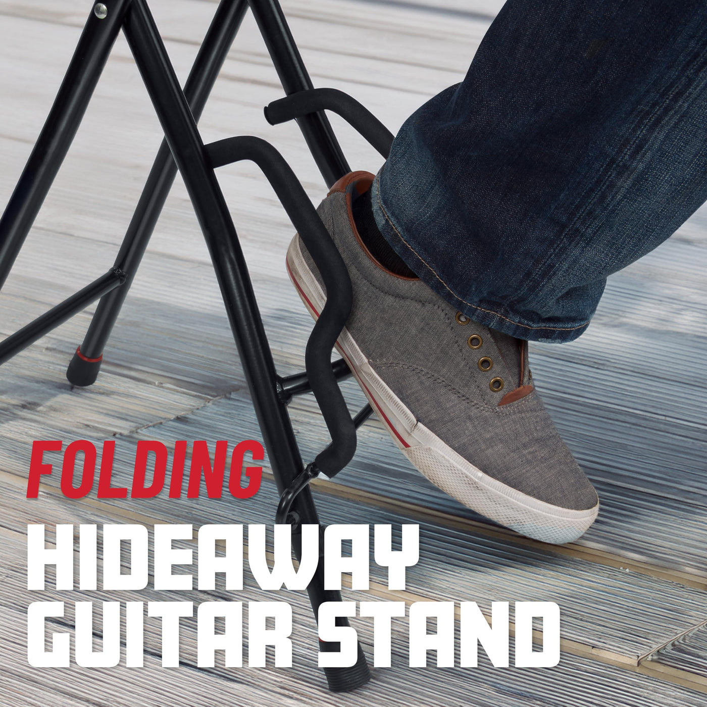 Gator Frameworks Guitar Seat with Padded Cushion, Ergonomic Backrest and Fold Out Guitar Stand; Holds both Acoustic and Electric