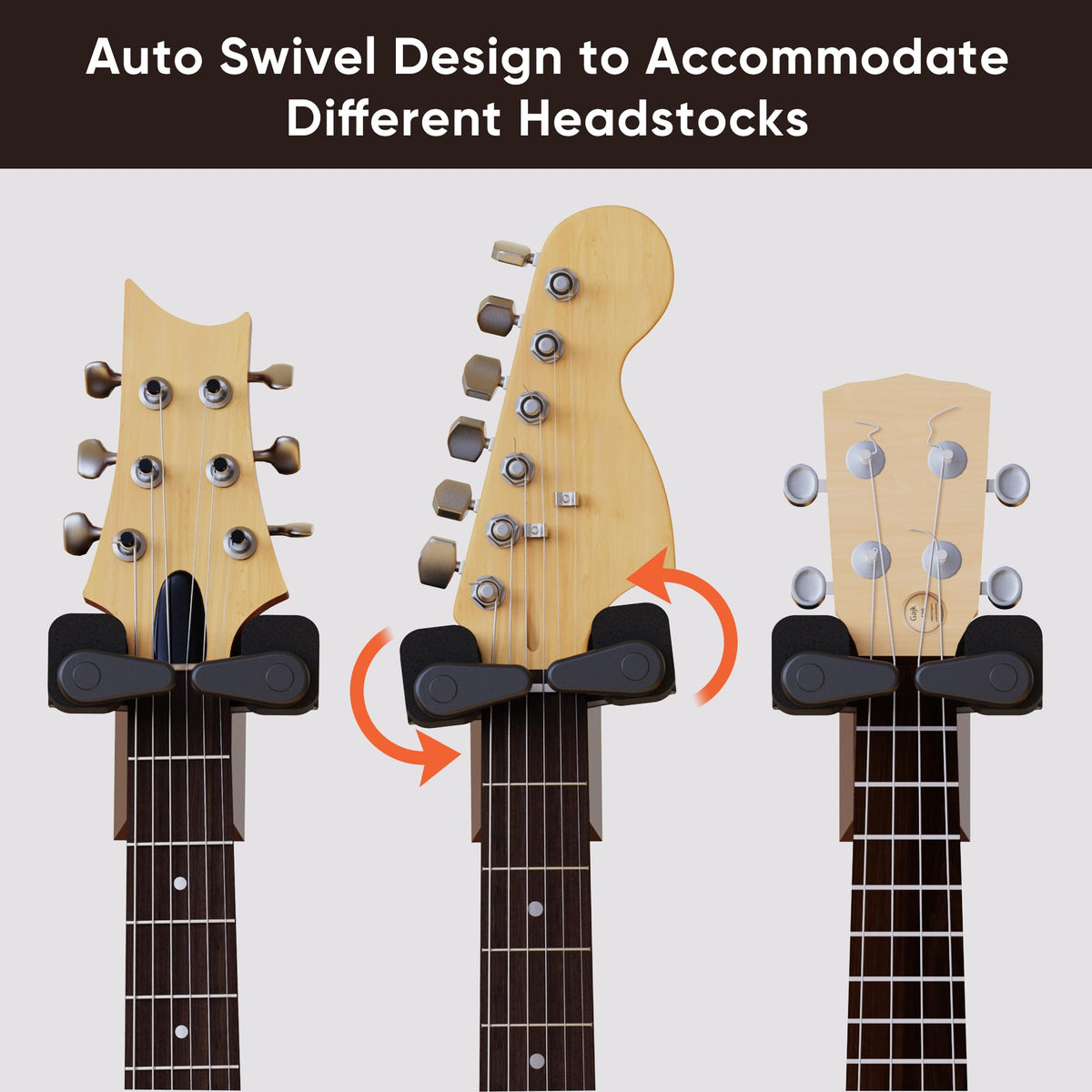 Guitar Wall Mount Hanger, Hard Wood Base Guitar Hook Auto Locking for Acoustic, Classical, Electric, Bass Guitars, Ukuleles, 2 P