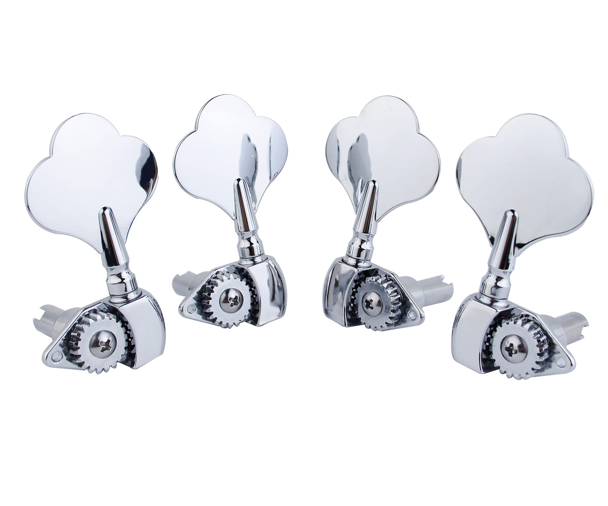 Guyker Open Frame Electric Bass Machine Head (2R + 2L) - 1:20 Ratio Gear Tuners Tuning Key Pegs - chrome