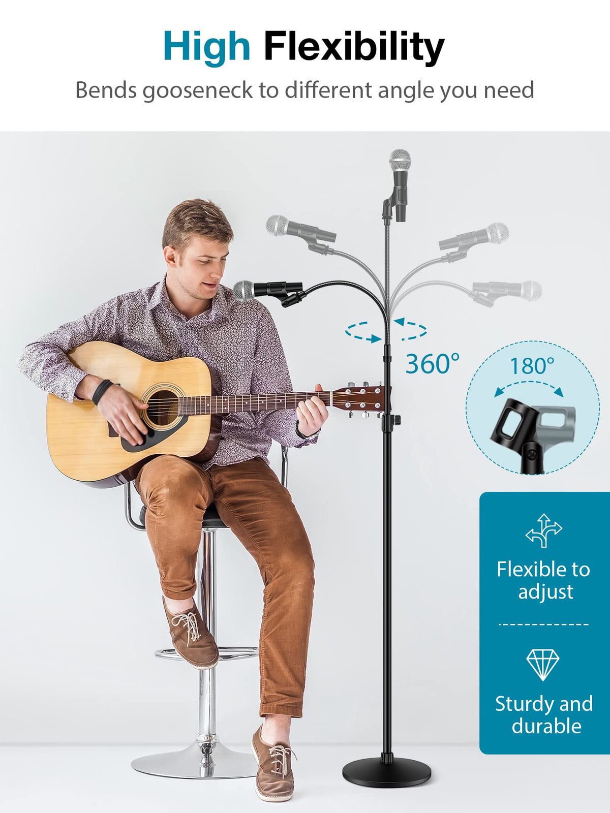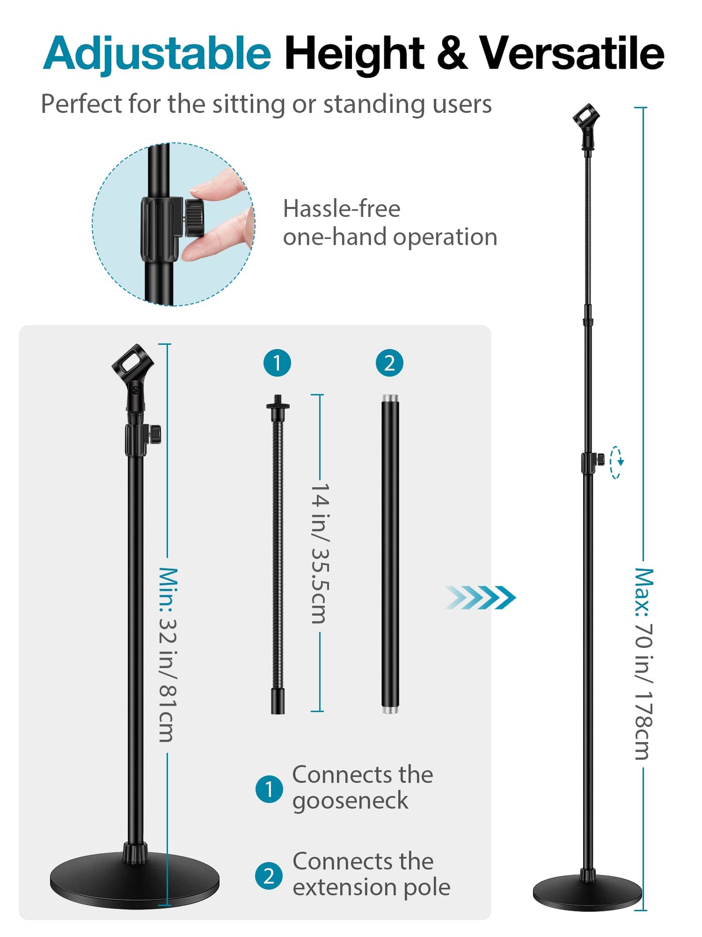 InnoGear Microphone Stand, Mic Stand Detachable Gooseneck Mic Floor Stand Height Adjustable from 32 to 70 with Weighted Ro