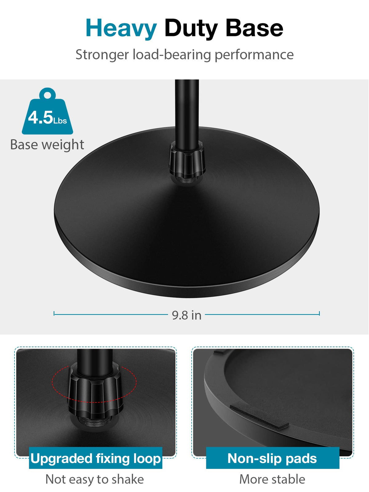 InnoGear Microphone Stand, Mic Stand Detachable Gooseneck Mic Floor Stand Height Adjustable with Weighted Round Base for Blue Yeti Blue Snowball Shure SM7B Shure SM58 Samson Q2U