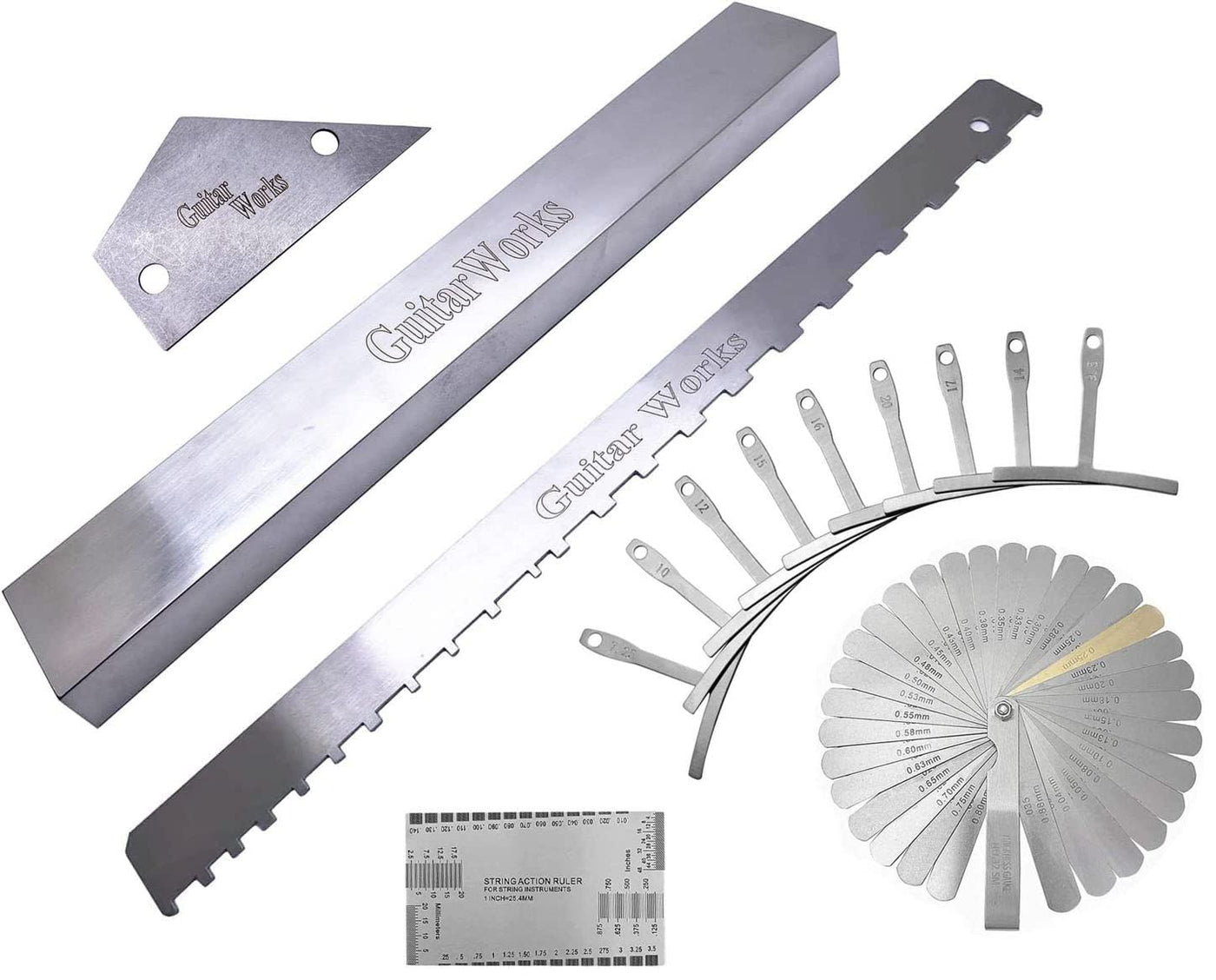jiayouy Set of 14 Pieces Luthier Tools Set Guitar Neck Notched Straight Edge 9pcs Guitar Radius Gauge String Action Gauge Ruler