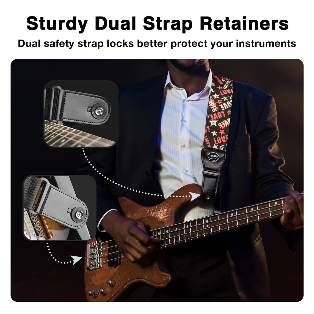 LEKATO Guitar Bass Strap for Electric Guitar Bass, 3'' Wide Padded Guitar Strap Neoprene Pad with 3D Sponge Filling Adjustable L