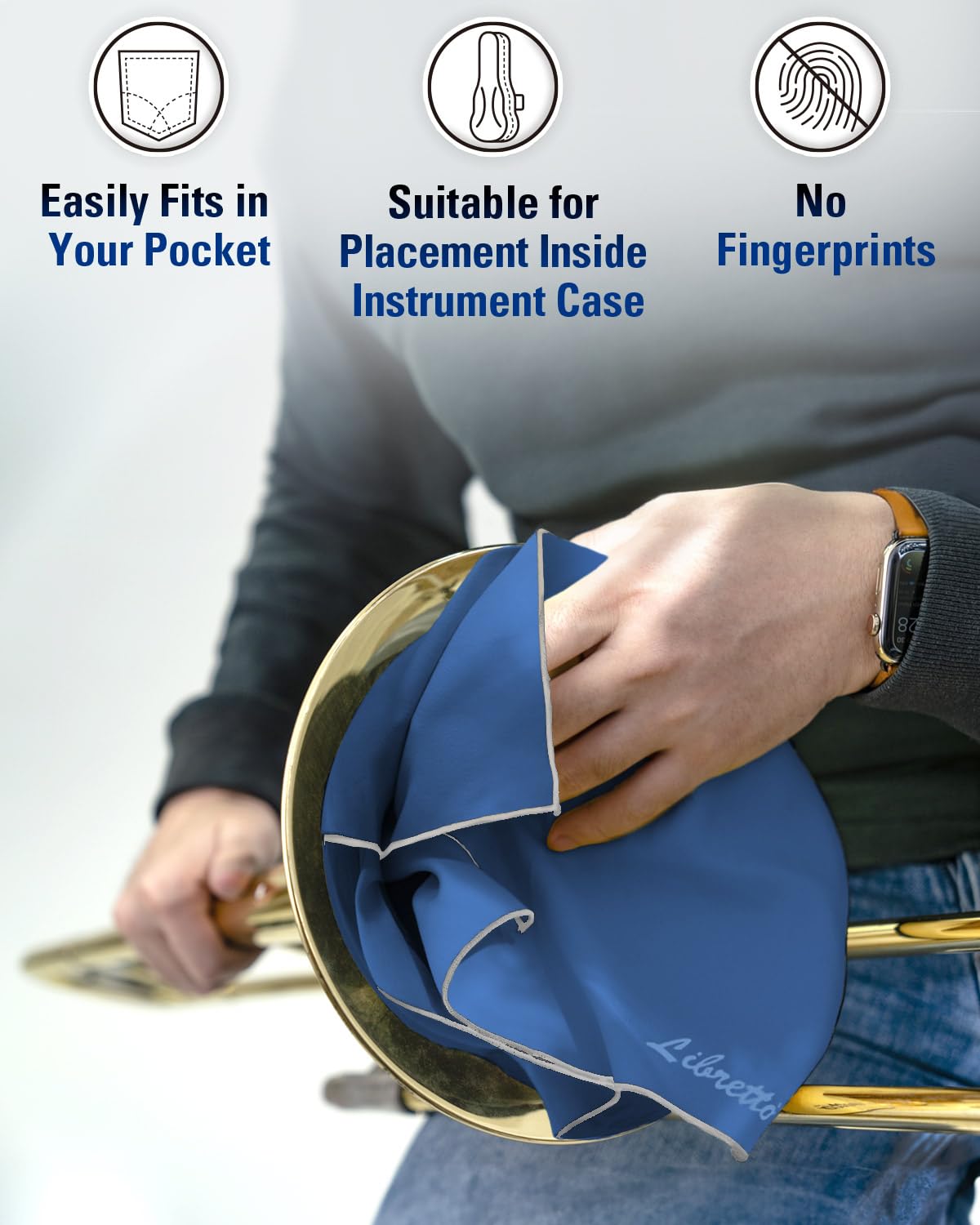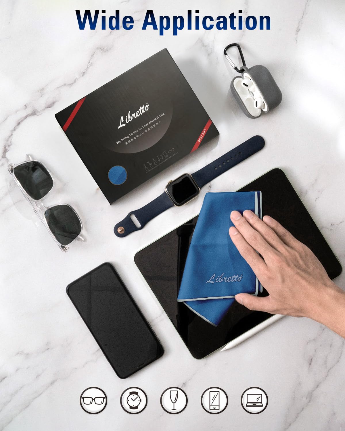 Libretto Microfiber Polish Cloth, 3 Useful Sizes in 1 Pack, Violin and Cello Cleaning & Polishing Products, Blue, Lint-Free, Sup