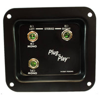 • Q: Can this jack plate be used with guitar cabinets? A: Yes, the Plug and Play Jack Plate is commonly used with guitar cabinets, particularly in setups that require stereo or mono operation.